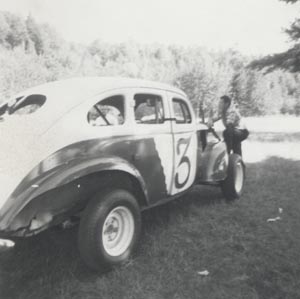 Congressman Welch points to his favorite Milk Bowl winner 1960-61 car of Clyde Andrews